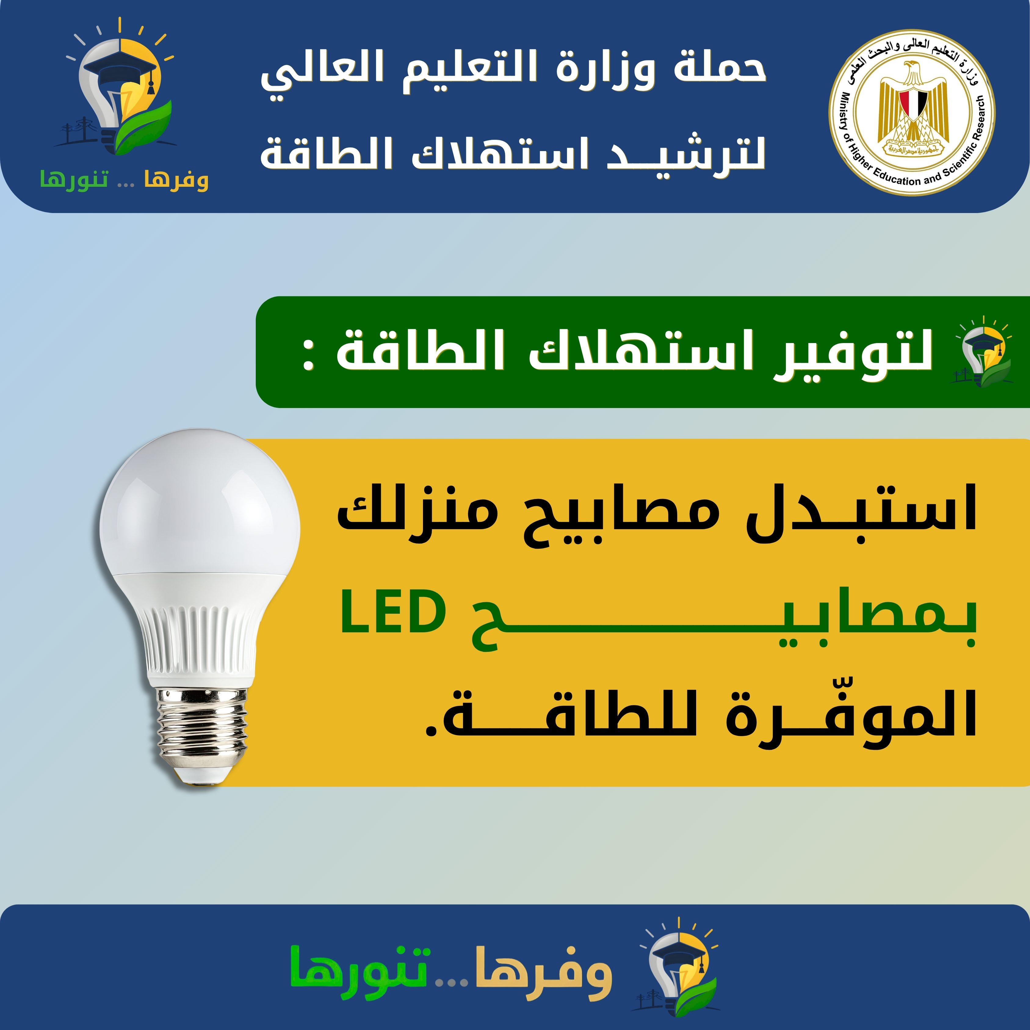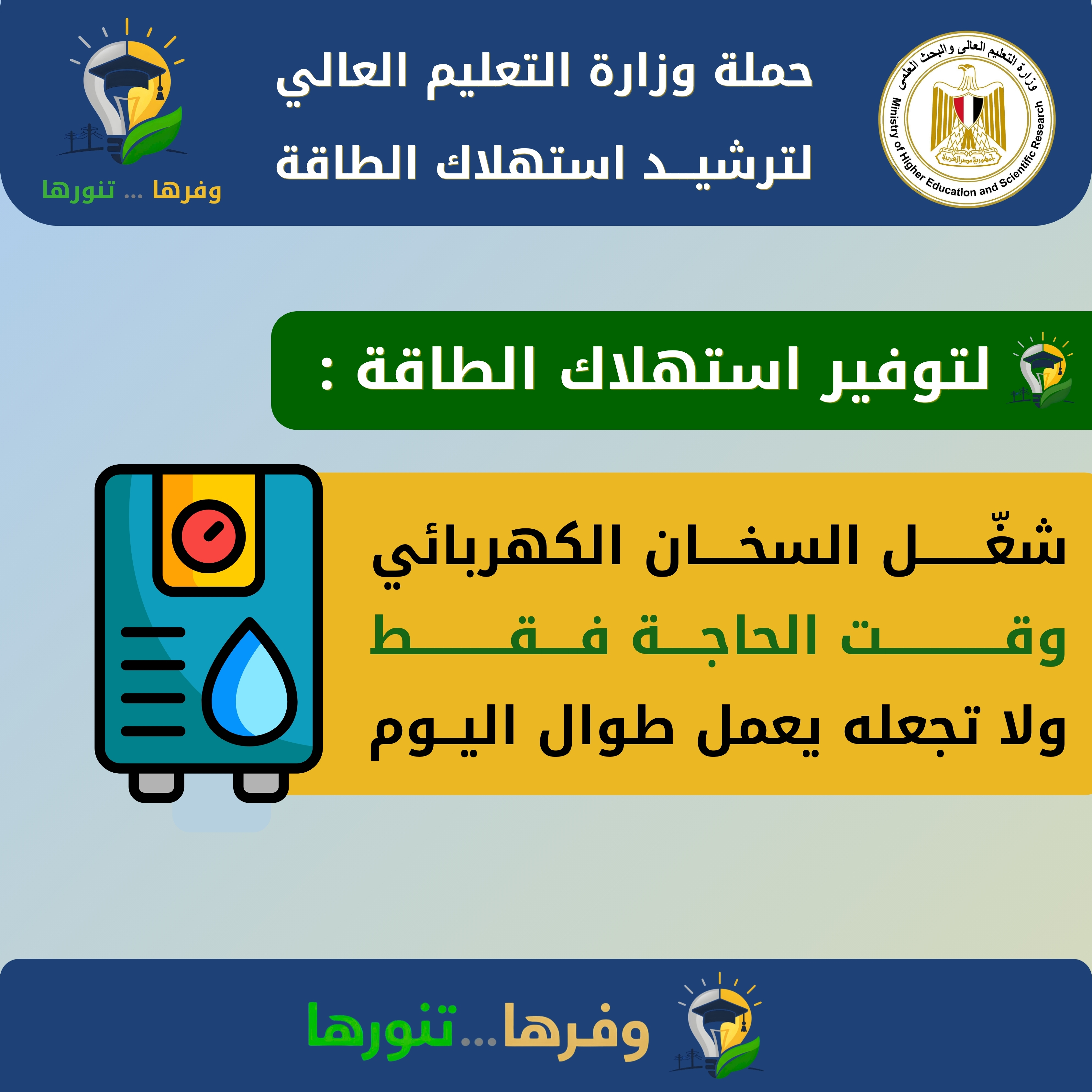 - في إطار توجيهات وزارة التعليم العالي ومواكبة التحديات العالمية، تُطلق حملة لتعزيز دور طلاب الجامعات في ترشيد استهلاك الطاقة.