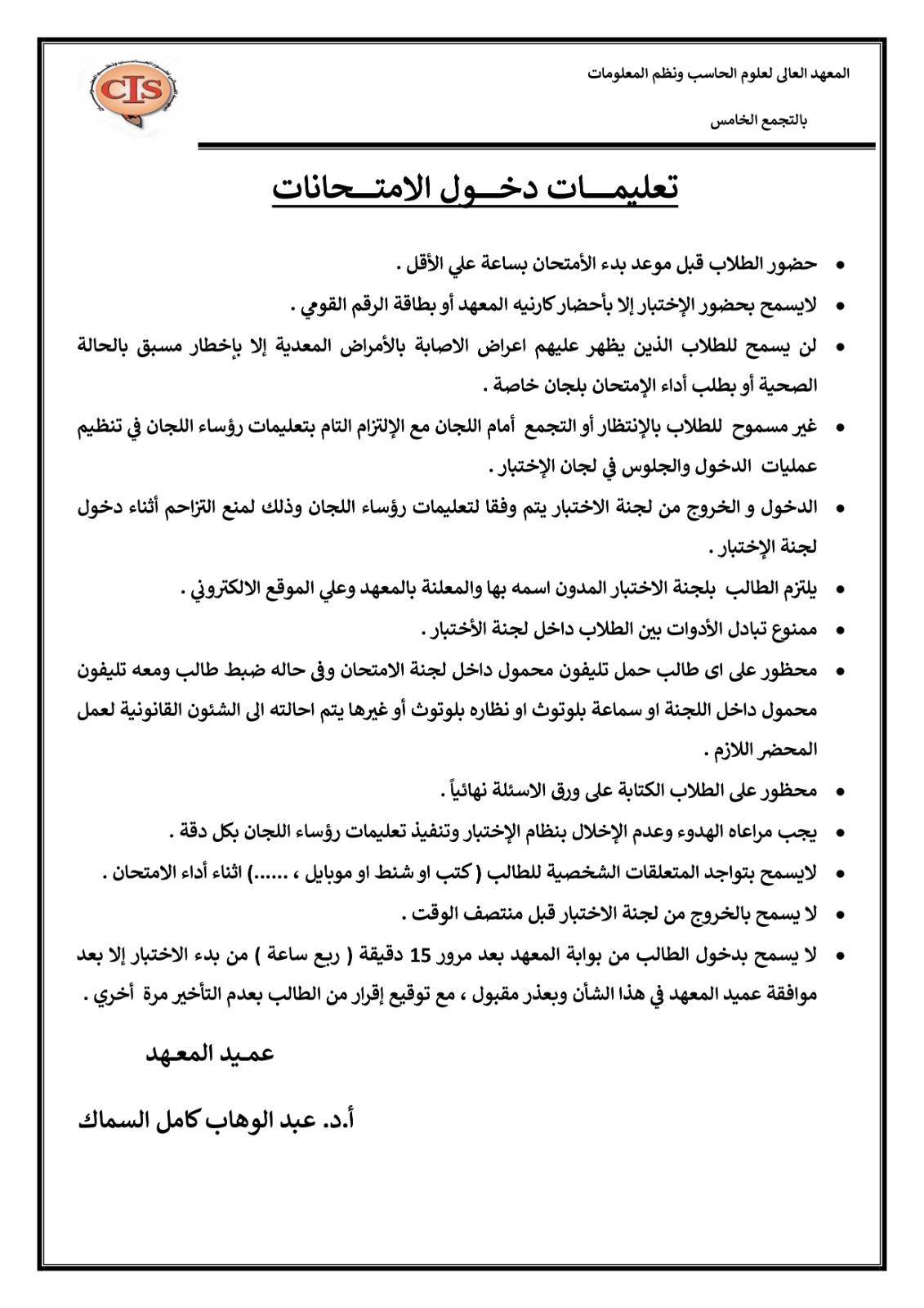 لمعرفة تعليمــــــــــــــات دخـــــــــــول الامتـــــــــــحانات انظر الصورة المرفقة
