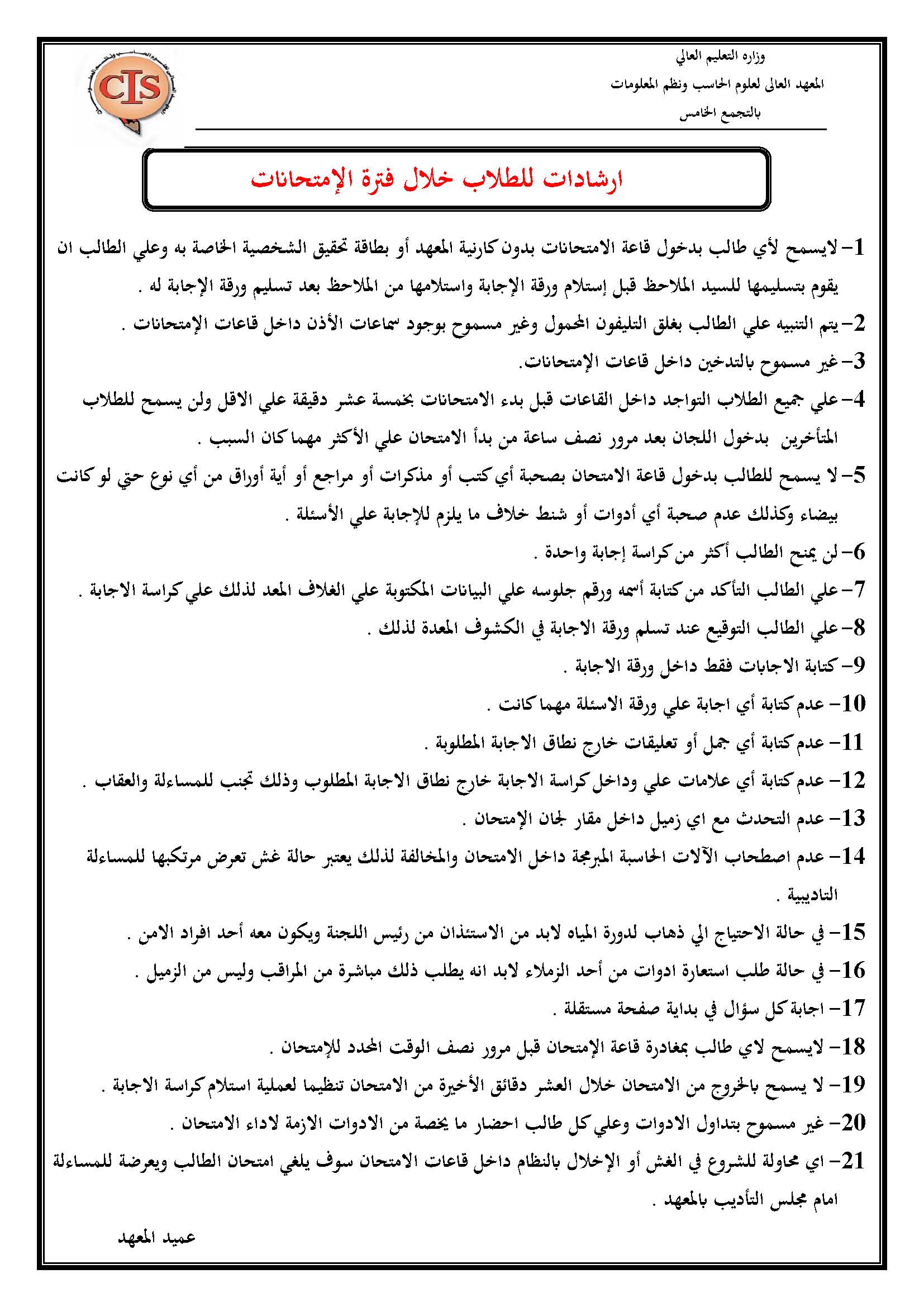 لمعرفة تعليمــــــــــــــات دخـــــــــــول الامتـــــــــــحانات انظر الصورة المرفقة