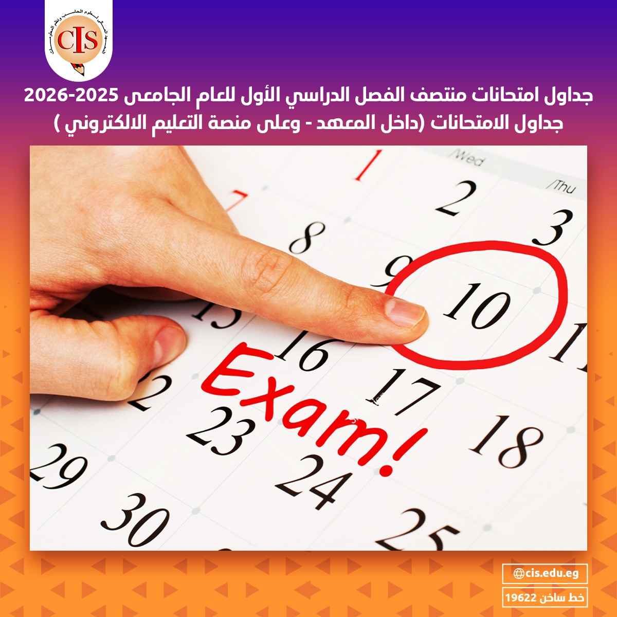 جداول الامتحانات (داخل المعهد - وعلى منصة التعليم الالكتروني )